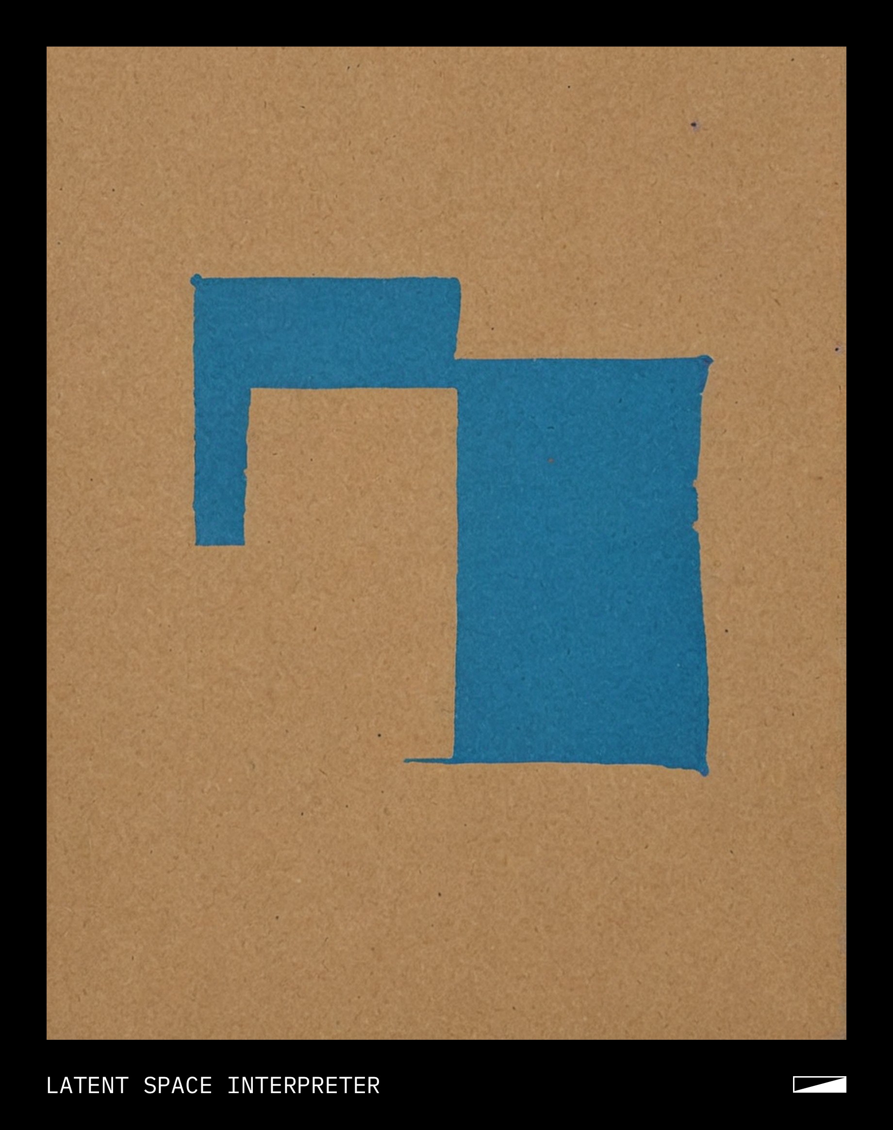 The image features a hand-drawn blue square placed on top of a brown background, possibly a card or poster. The square is quite prominent and takes up most of the visible area. There are also two smaller squares located towards the bottom left corner of the image. Additionally, there's another small square situated at the center of the image.