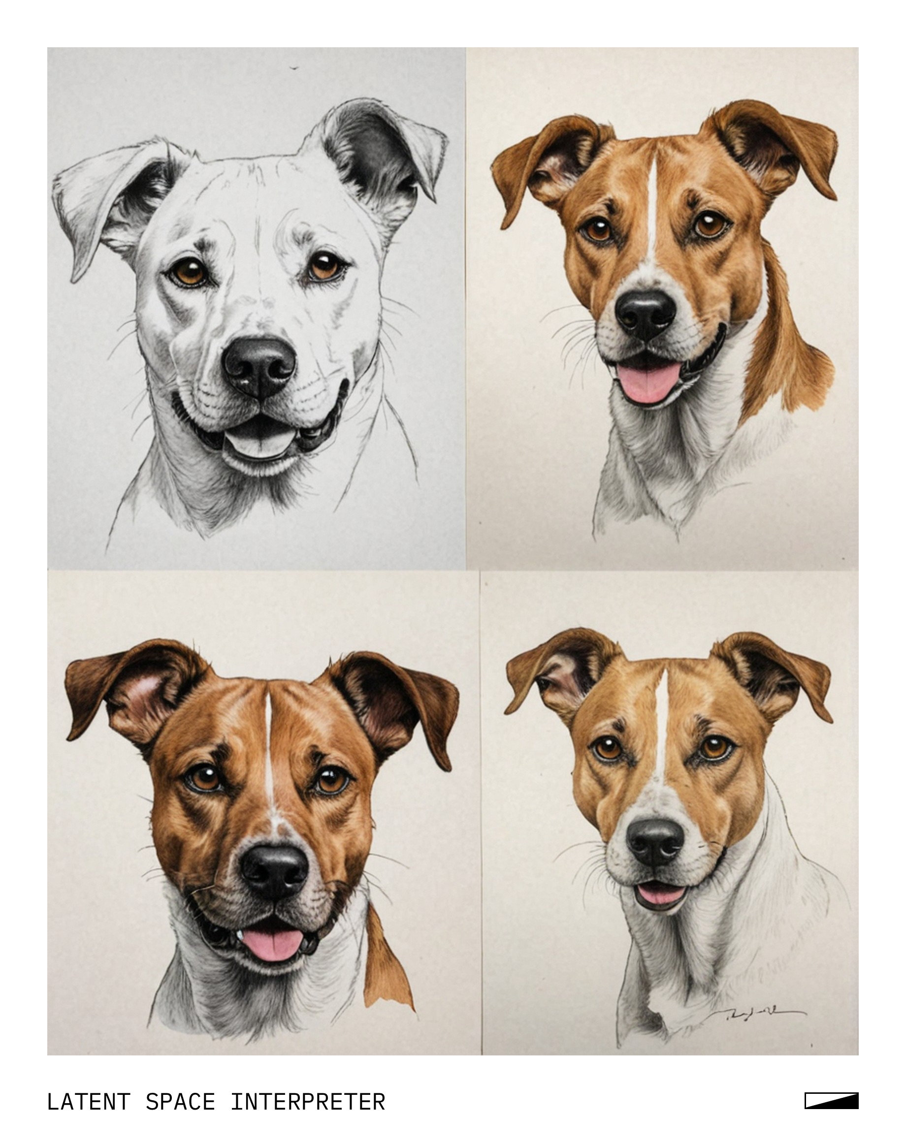 The image displays a dog drawing on a white paper or board, with the image of a dog's head taking up most of the space. In addition to the main drawing, there is a second drawing that appears to be a representation of the dog's nose extending towards its mouth. A third drawing can also be seen below and slightly to the right of the main dog's head, possibly depicting the dog's tongue sticking out.