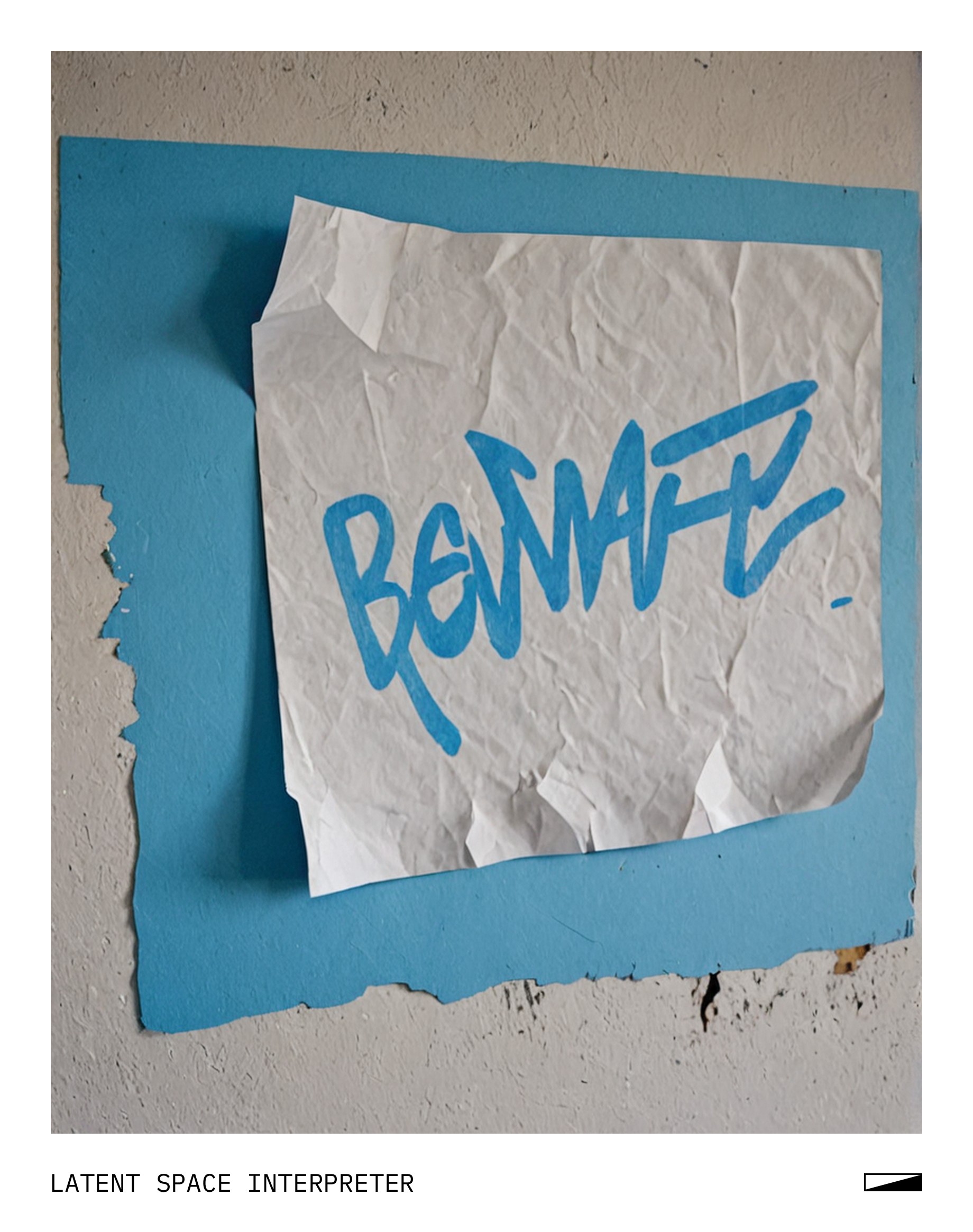 The image features a white piece of paper with graffiti written on it. The writing is blue and appears to be a signature or tag, possibly representing a particular group or individual. The paper is placed on a surface that reflects the light from a nearby window, making the graffiti more visible. The scene seems to take place indoors, as there's no direct sunlight shining on the paper.