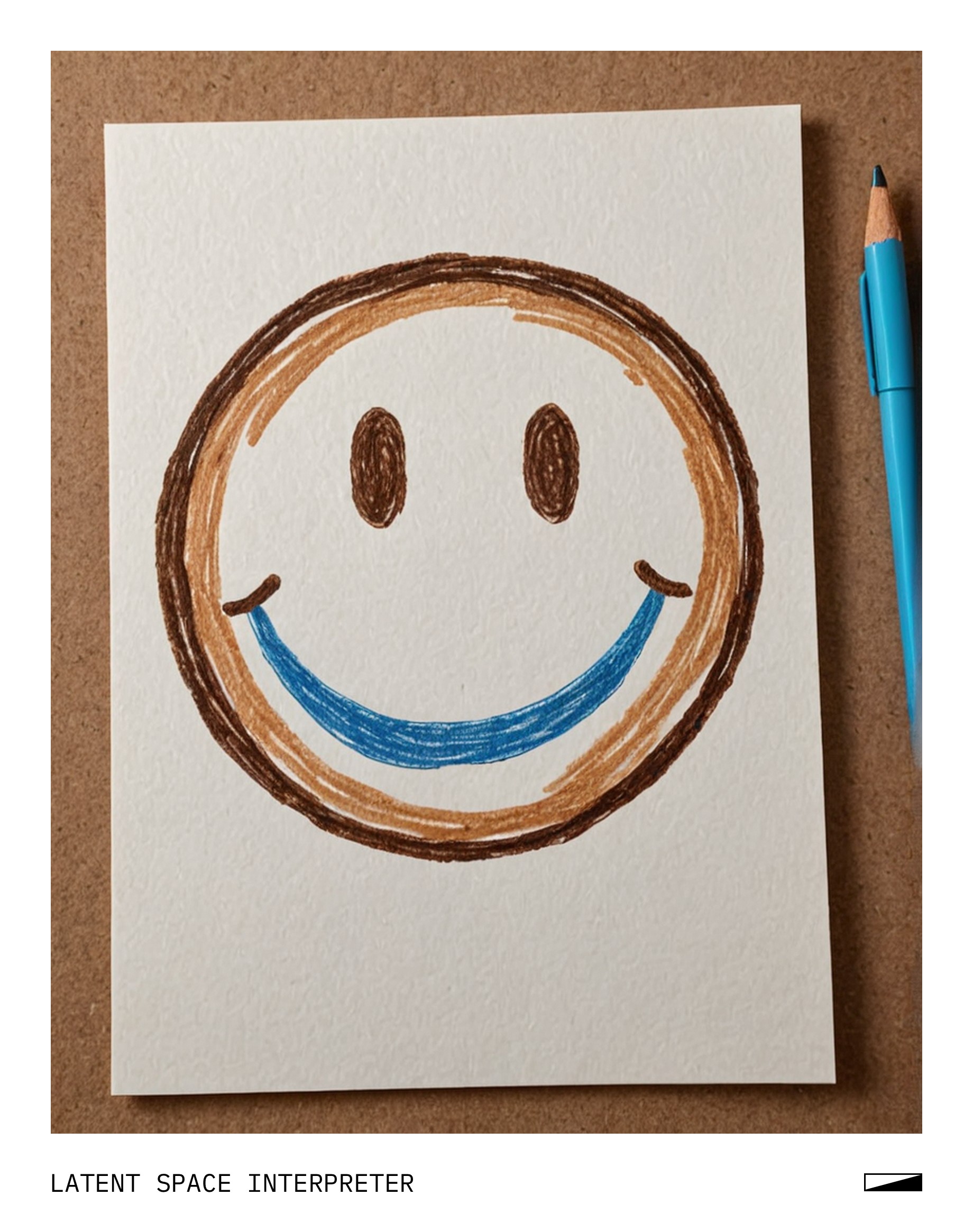 The image features a smiling face drawn on a piece of white paper with blue and brown colors. It appears to be a doodle or an artistic expression, likely made by someone using their finger as a stylus. The smiley face is adorable and cheerful, adding a sense of warmth to the scene.