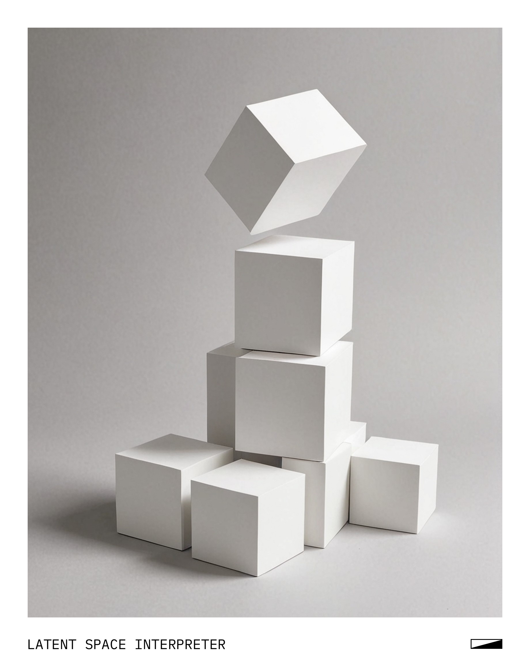 The image features a white sheet of paper with various shapes drawn on it, including four small cubes and one larger cube. These shapes are arranged in a way that they appear to be stacked or placed next to each other. The smaller cubes are positioned at the top left corner, while the larger one is located towards the right side of the paper. This artistic arrangement creates an interesting visual effect, showcasing the artist's creativity and attention to detail.