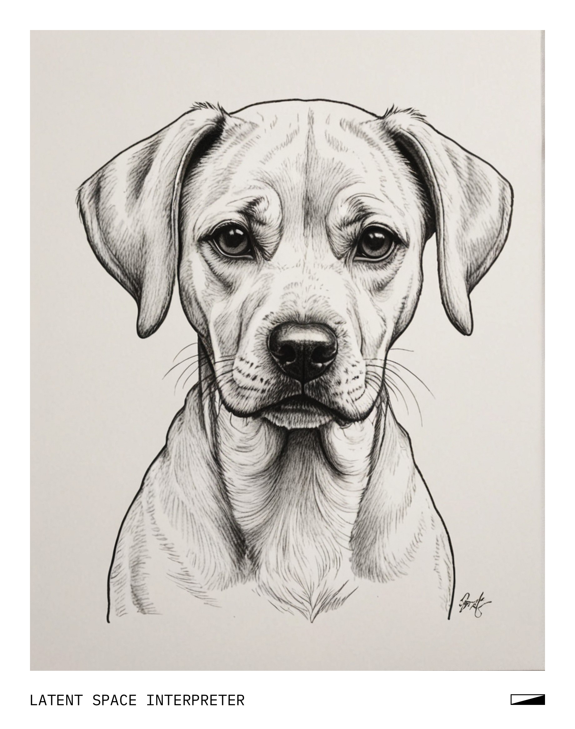 The image features a drawing of a dog with a sad face, likely drawn by someone using a pencil or marker. The dog's facial expression appears to be quite melancholic as it looks downward. The drawing is placed on a white background, which provides a clean and uncluttered appearance for the artwork.