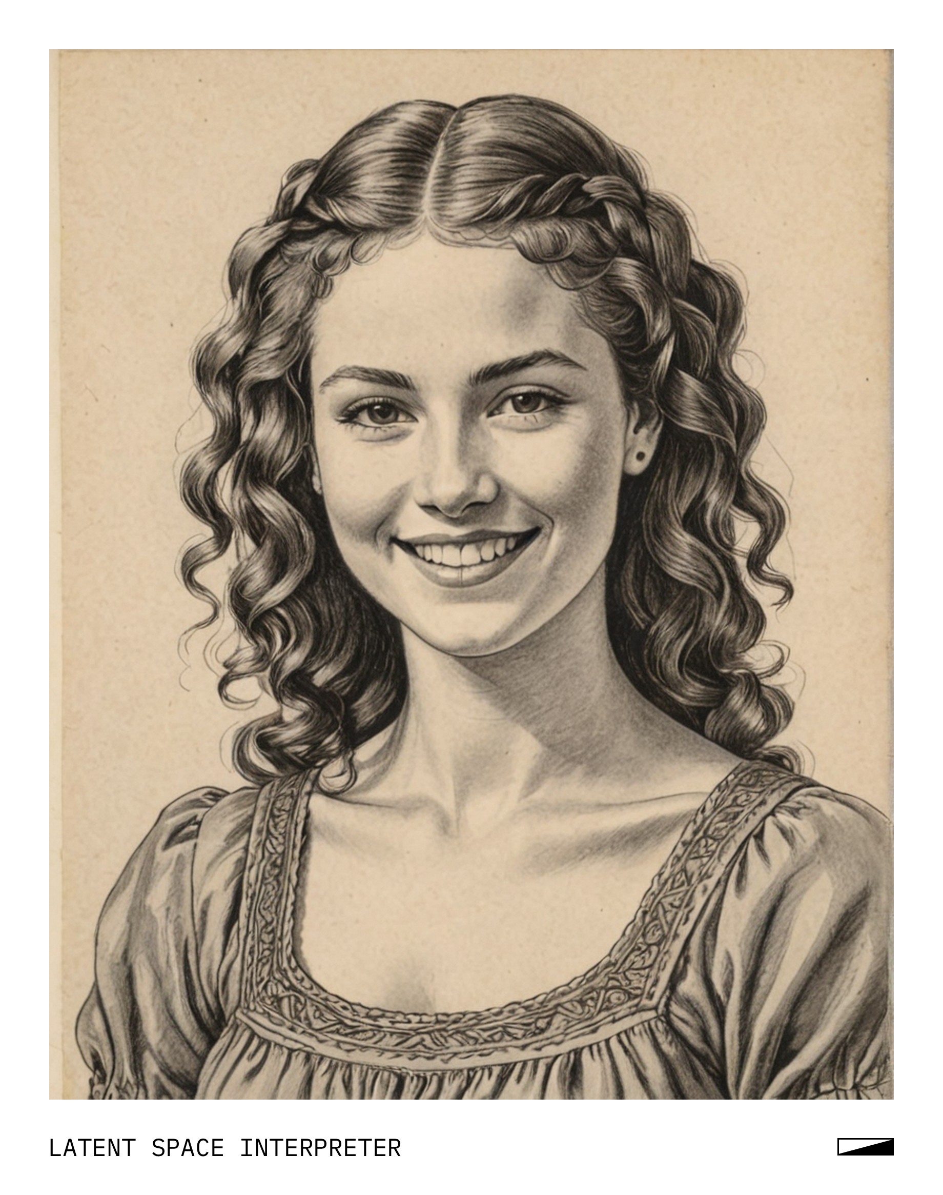 The image features a drawing of a woman with a smiling face and a head full of hair, possibly braided or curly. She is wearing a dress, which adds to the overall charm of the picture. The drawing appears to be done by hand, giving it a unique and personal touch.