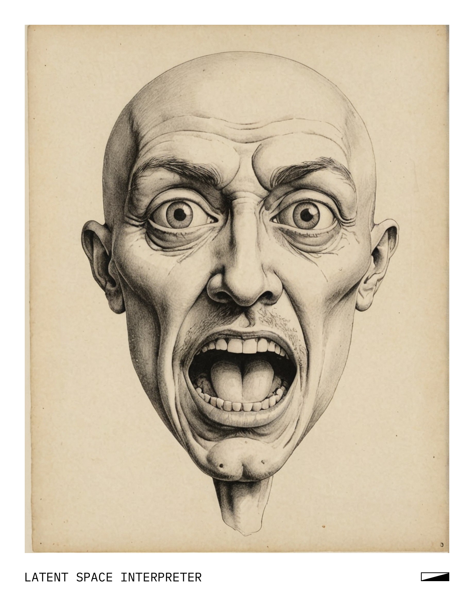 The image features a drawing of a face with a large, open mouth and two eyes. The mouth is depicted as having a nose that has been drawn out to look like it's sticking out of the mouth. This unique artwork appears to be a creative representation of a face with a humorous twist.