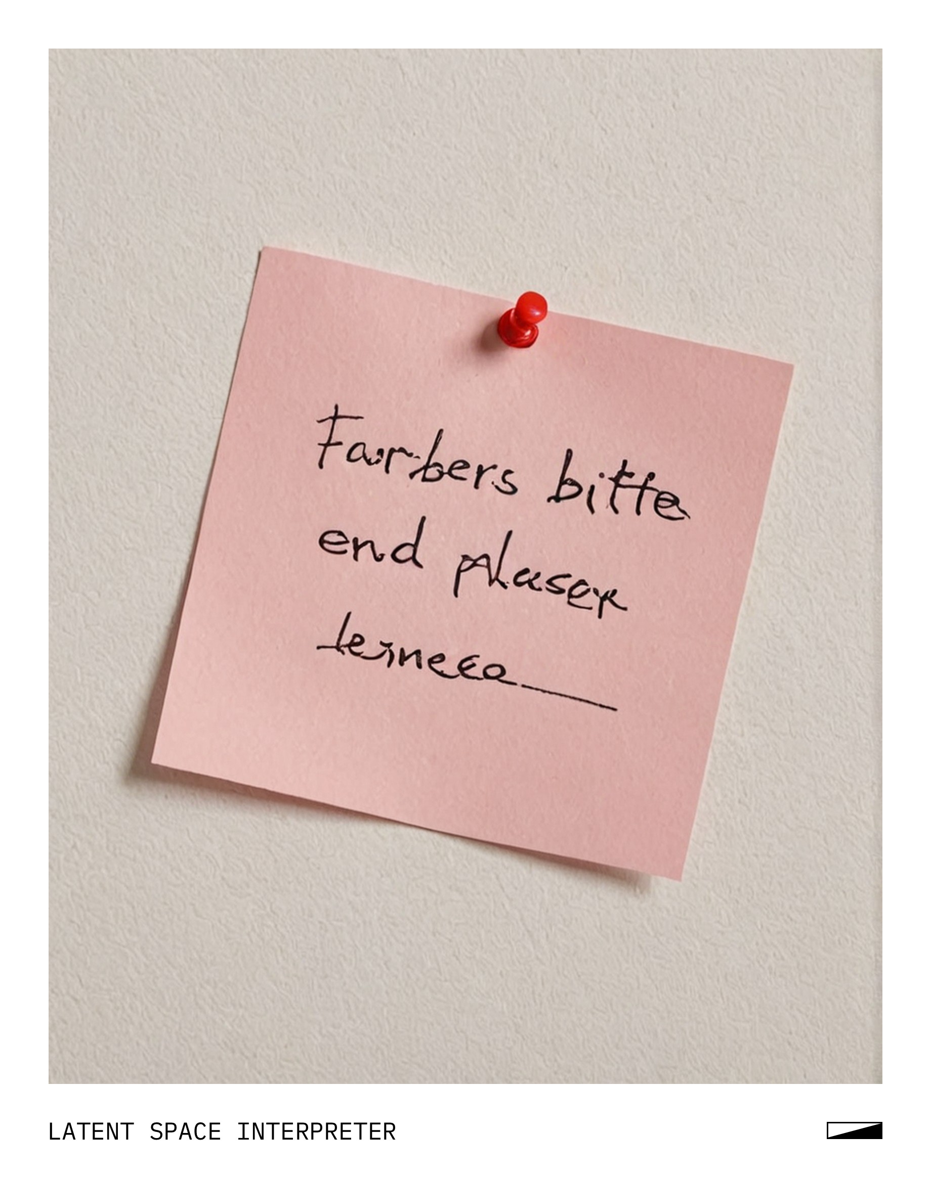 The image features a handwritten note on a piece of paper, which is placed on top of a white wall or surface. The note appears to be written in German and reads "Farbberbeite Bitte Ende," which translates to "Colored Paper Please End." It seems like the person writing the note wants the colored paper to end or stop being used.