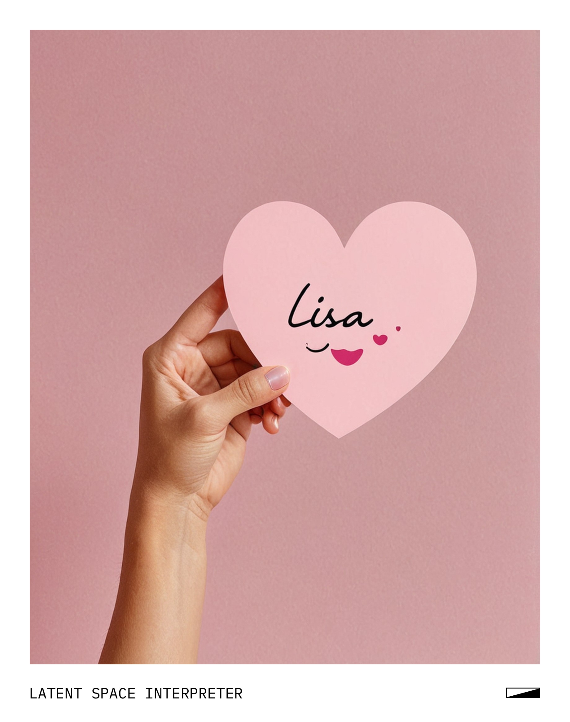 The image features a heart-shaped card with the name "Lisa" written on it, along with a drawing of a hand giving a thumbs up. The card is placed on top of a pink background, which adds a touch of warmth to the scene. The combination of the heart and the thumbs up signifies a positive message or sentiment towards Lisa.