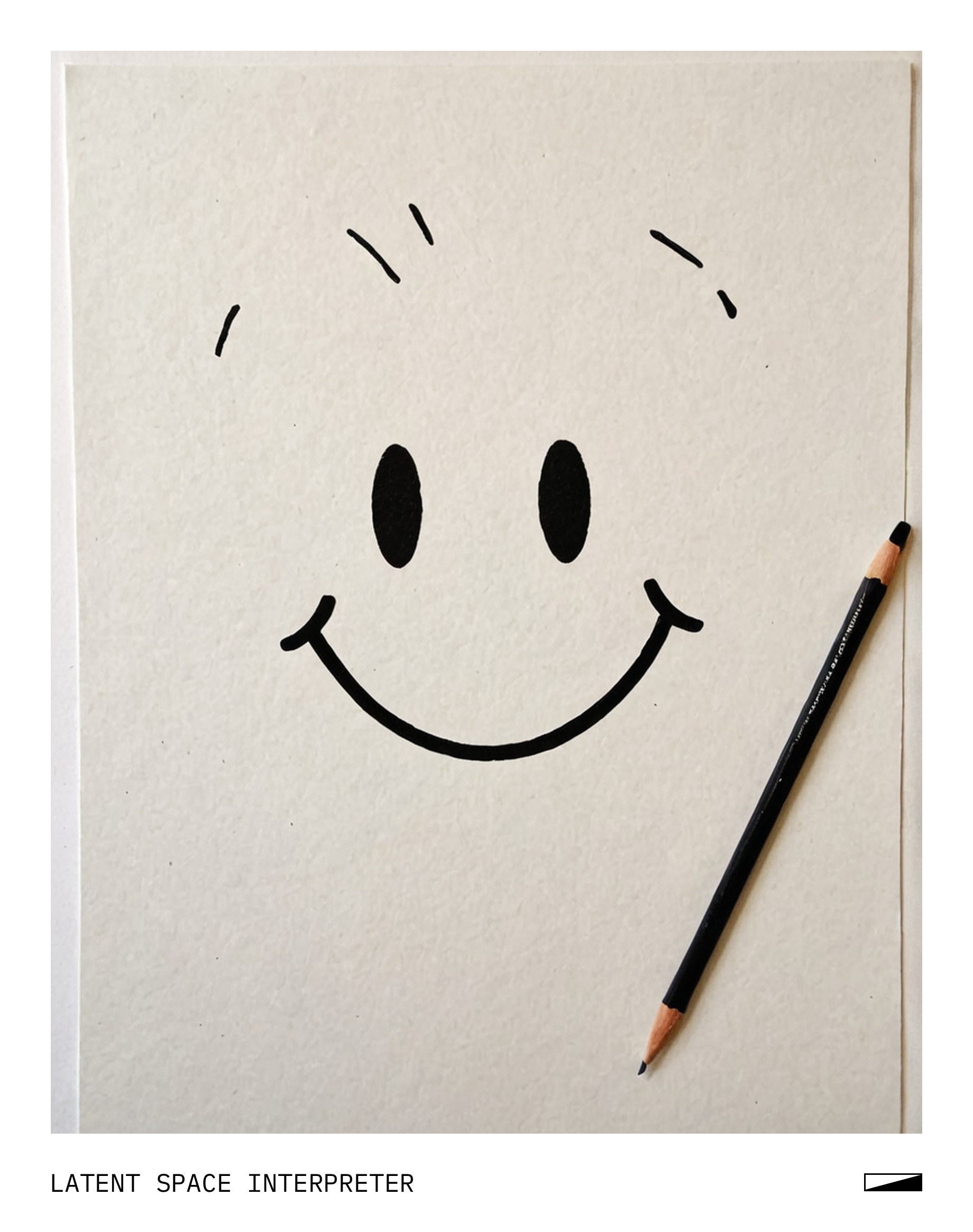 The image features a white sheet of paper with a smiley face drawn on it using a pencil. The smiley face is located towards the center of the paper, and its eyes are filled in with black pencil marks. The drawing appears to be simple yet charming, adding a touch of warmth and positivity to the scene.