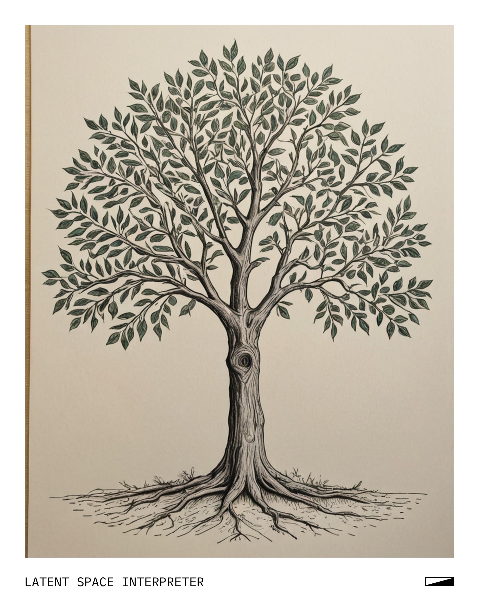 The image features a drawing of a tree on a piece of paper, which is placed on a wall or a surface. The tree has a unique and creative appearance with its branches and leaves. The drawing appears to be done by hand, showcasing the artist's skill and attention to detail.