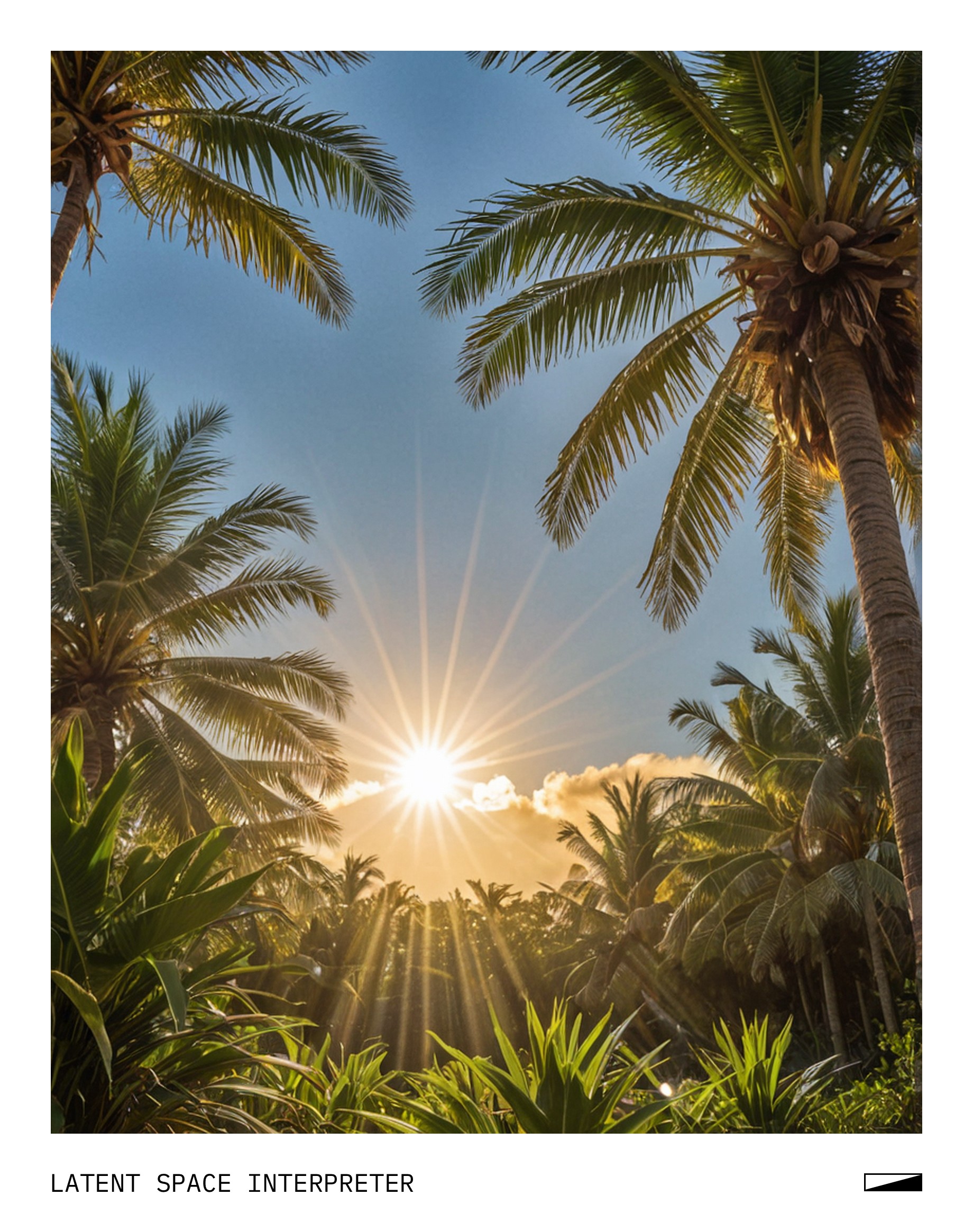 The image features a drawing of a sun, with the sun's rays extending outwards and creating a warm atmosphere. In the background, there is a picture of a palm tree, adding to the tropical vibe of the scene. The combination of the sun and palm tree creates a visually appealing and inviting environment.