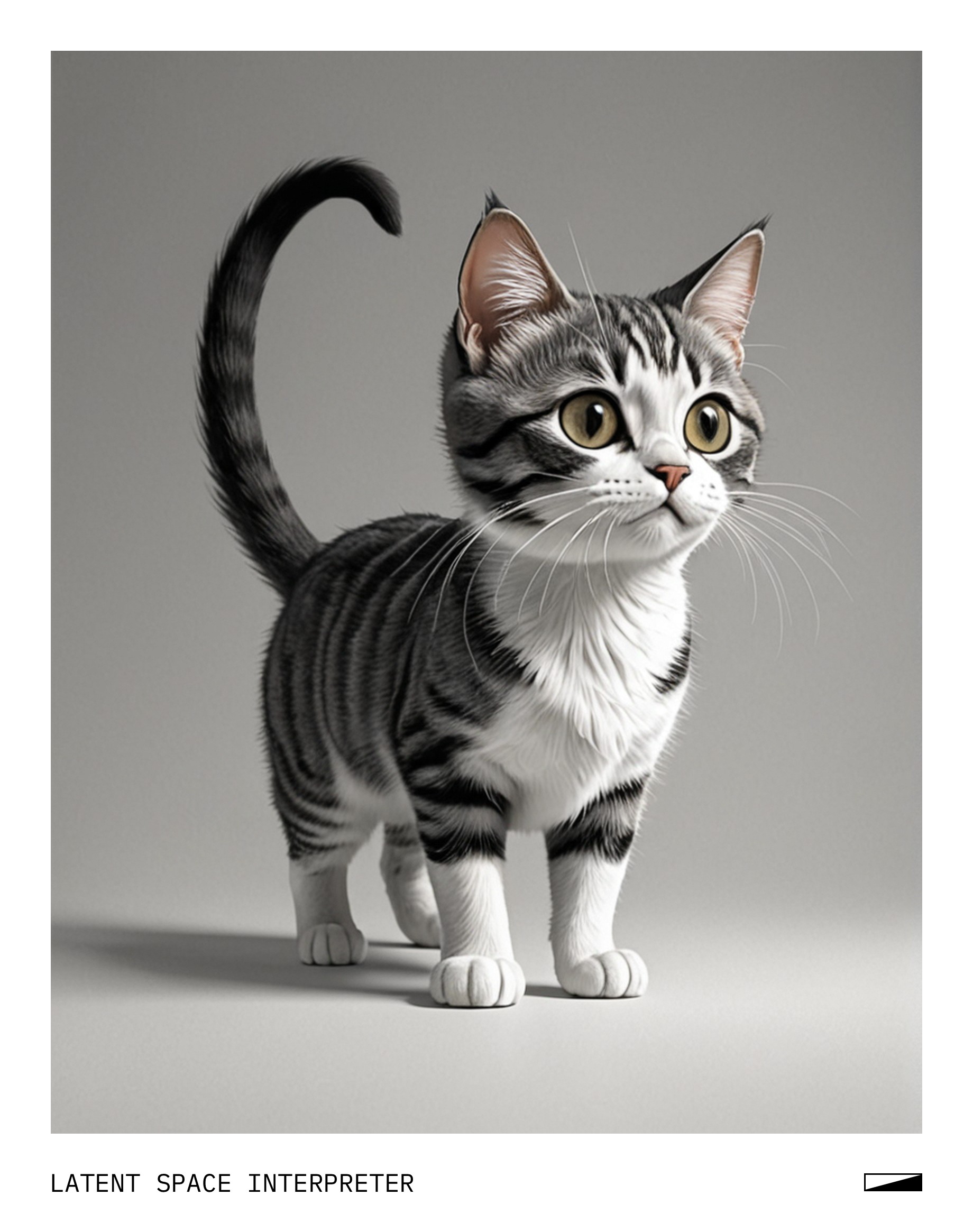 The image features a cartoon cat with large whiskers, standing on all fours. The cat appears to be looking at the viewer, as if it has just noticed them. The drawing is done in black and white, showcasing the cat's facial expressions. This charming illustration of a cat is displayed against a light background, creating a visually appealing scene.