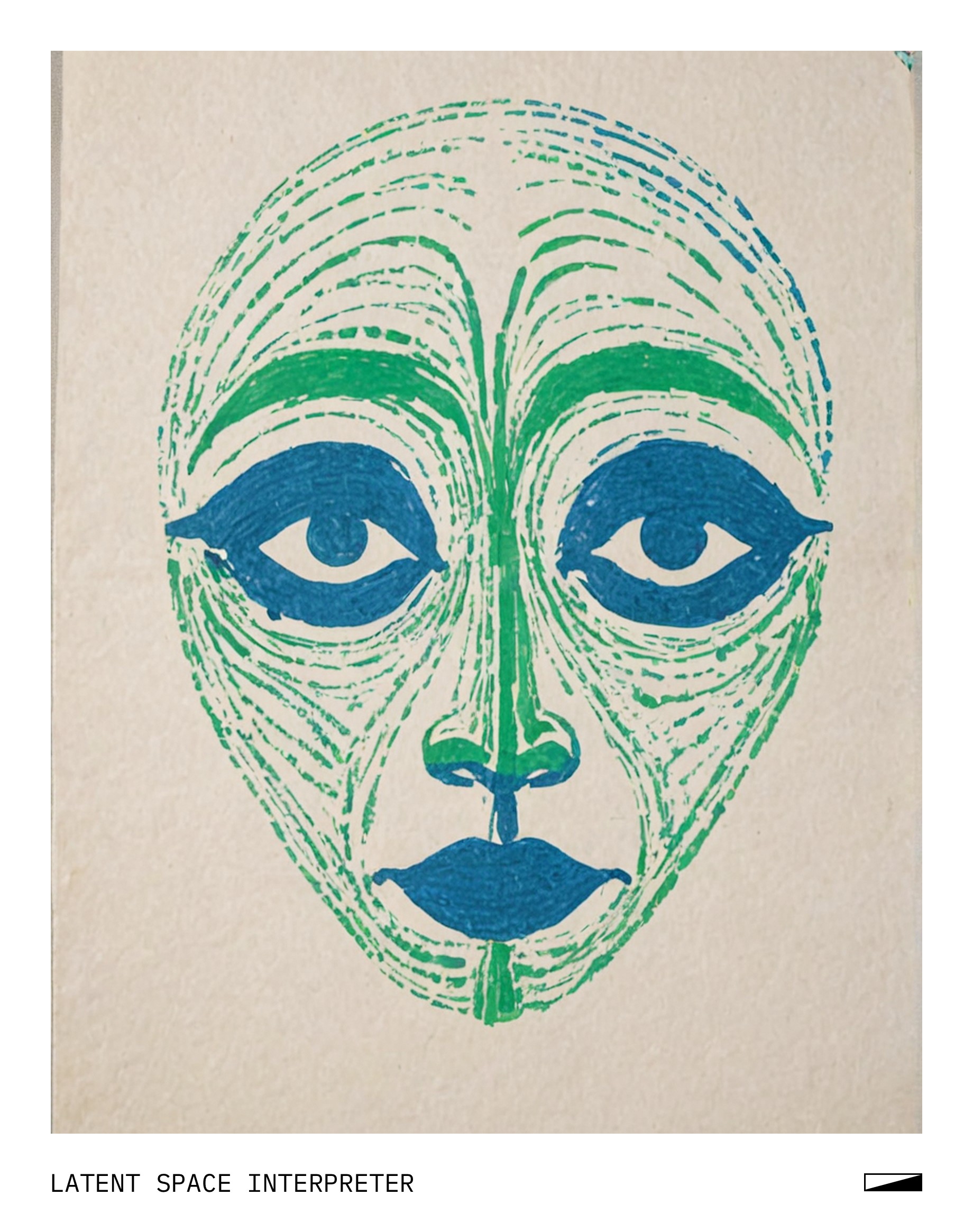 The image is a close-up of a white paper with blue and green writing on it, resembling an animal or possibly a human face. The paper appears to be handwritten, giving the impression that it was created by someone using their imagination. The text written on the paper might also have been drawn or outlined for better visibility.