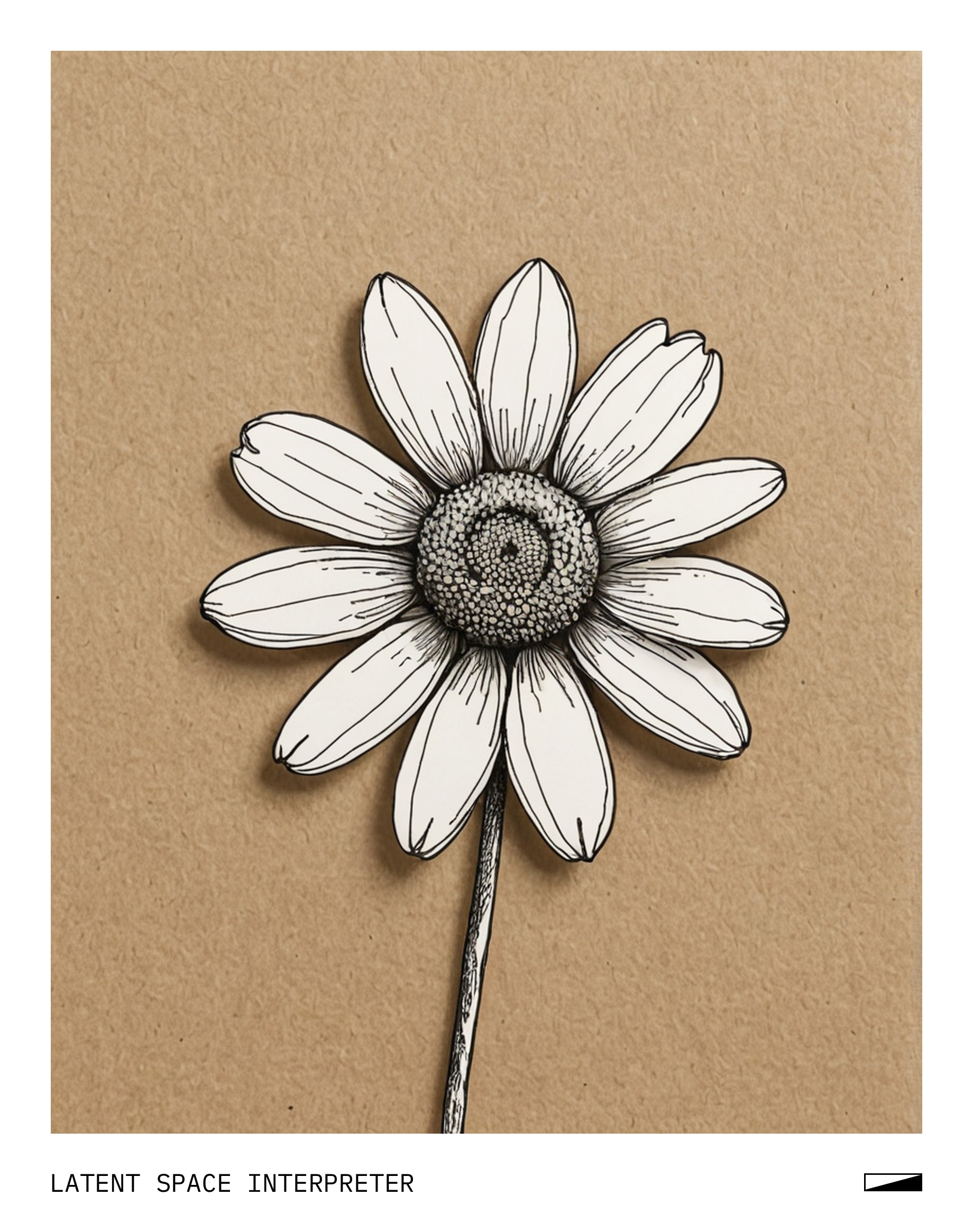 The image features a white piece of paper with a drawing of a flower on it, likely a daisy. The flower is depicted as having five petals and is placed near the center of the paper. The artwork appears to be hand-drawn, giving it a unique and personal touch.