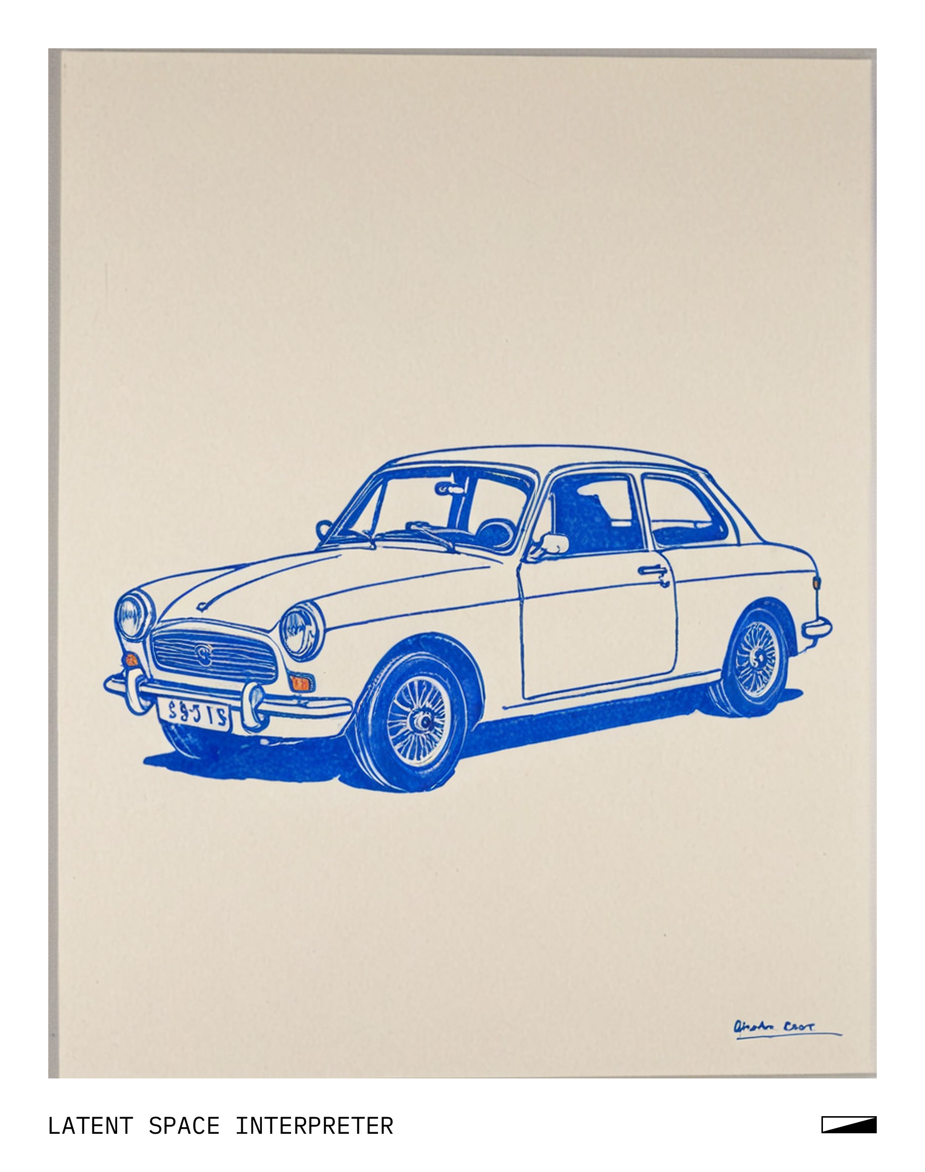 The image features a white piece of paper with a car drawn on it using a blue pen. The car is positioned towards the left side of the paper, and its outline can be seen clearly. The drawing appears to be a simple representation of a vehicle, possibly for educational purposes or as a decoration.