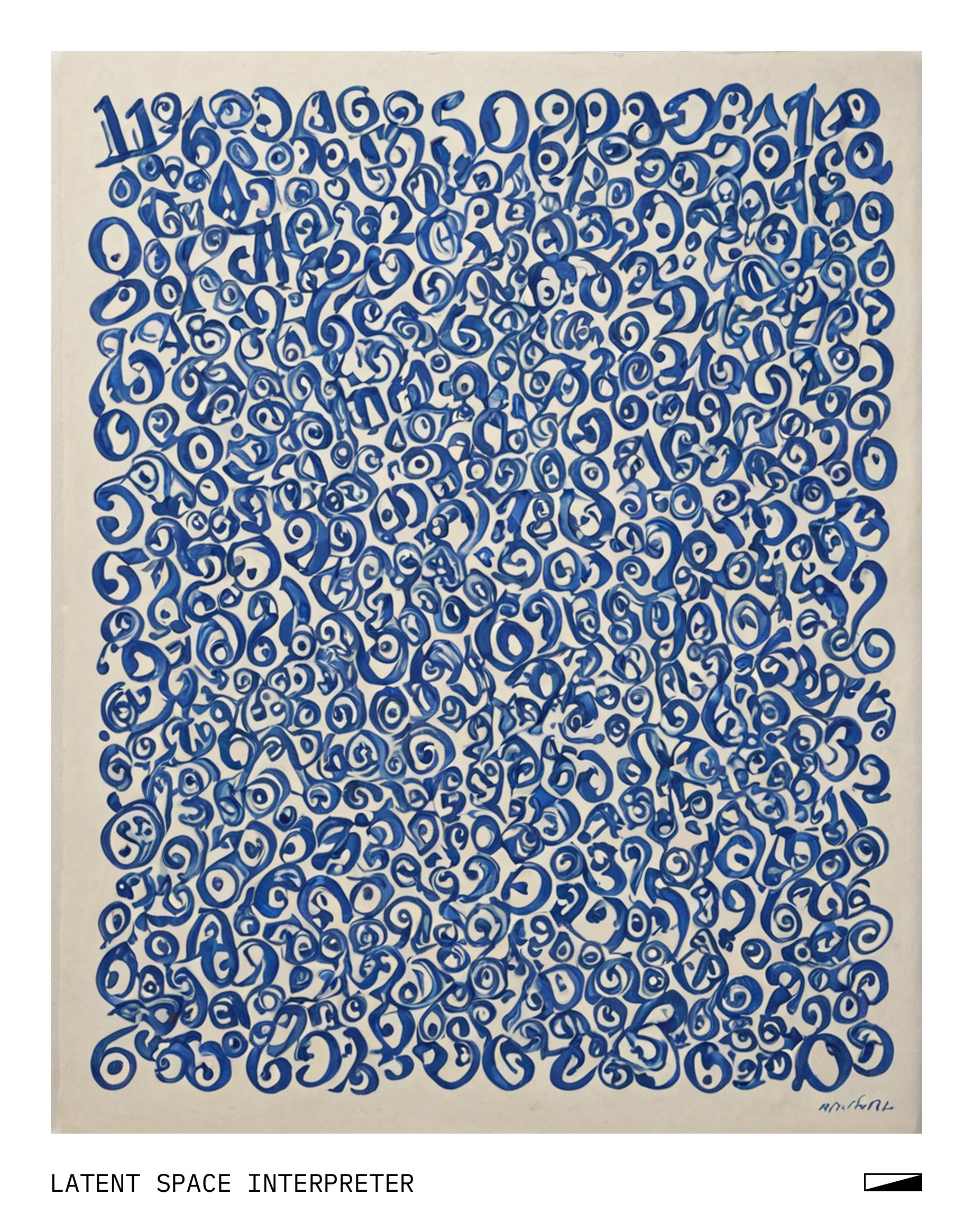The image features a piece of paper with a blue pen drawing on it, possibly a child's handwriting or artwork. The drawing appears to be a combination of letters and numbers, creating a unique pattern that stands out against the white background. The paper is placed on a surface, likely for display or as part of a project.