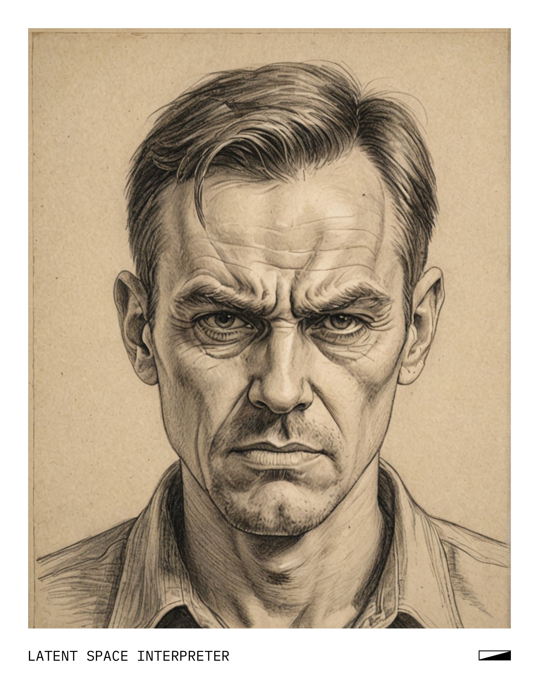 The image features a drawing of a man with a frowning expression, giving the impression that he is unhappy or displeased. The drawing appears to be done by hand and has been carefully crafted to capture the details of the face. The man's facial features include his eyes, nose, mouth, and ears, all of which are depicted in the drawing.