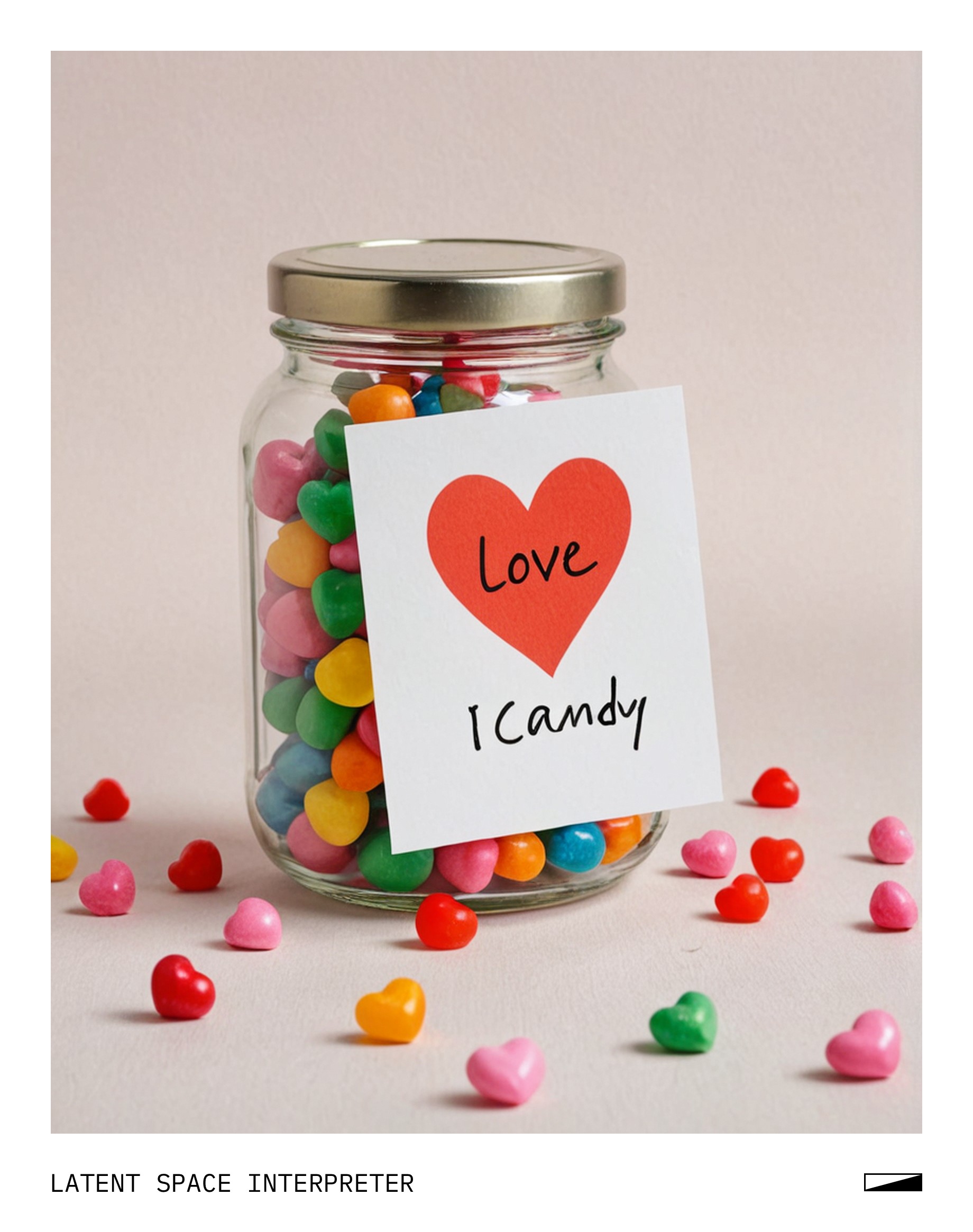 The image features a piece of paper with a message written on it, stating "I love candy." Above the message, there is a heart drawn, adding to the sentimental nature of the note. The paper appears to be placed inside a glass or container, which could be a jar or a vase.