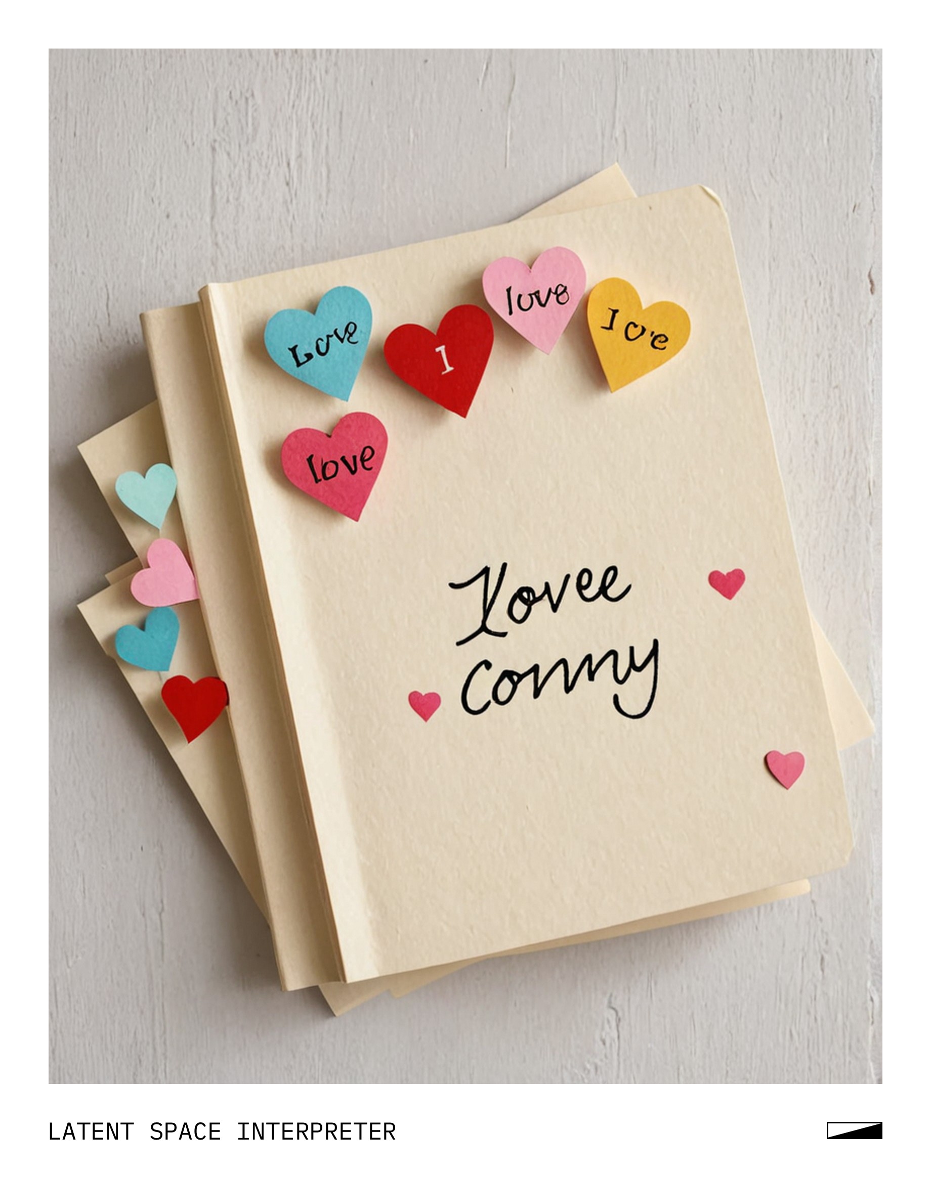 The image features a piece of paper with the words "I love Conny" written on it, accompanied by three hearts. These hearts are placed at various positions around the text, creating a visually appealing and heartwarming display. The paper appears to be attached to a book or another surface, making it stand out as a unique decoration or message.