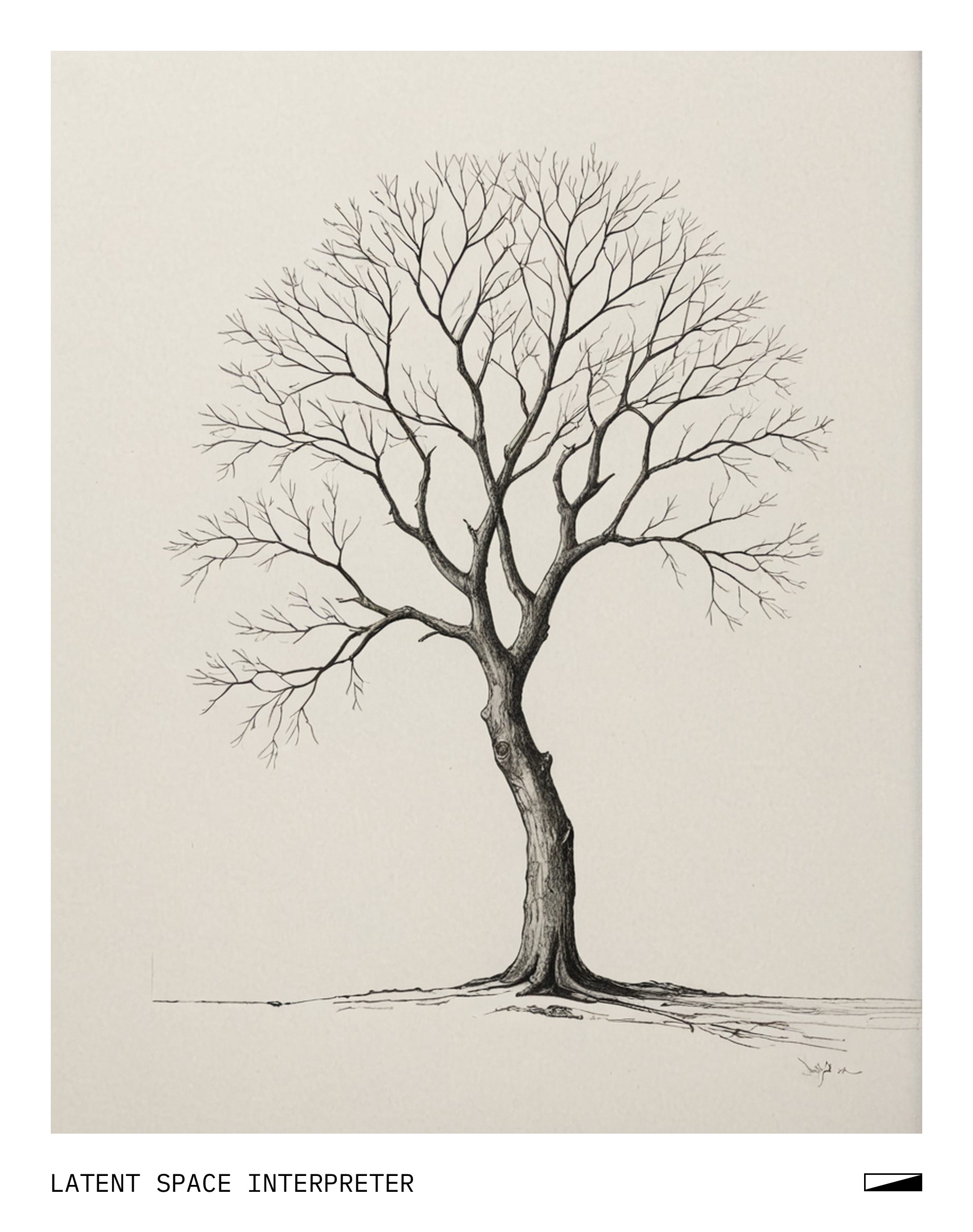 The image displays a simple drawing of a tree on the side of a white surface, possibly a piece of paper or a cardboard. The tree has a few branches and appears to be drawn with a pencil. The drawing is not very detailed, but it captures the basic outline and shape of the tree.
