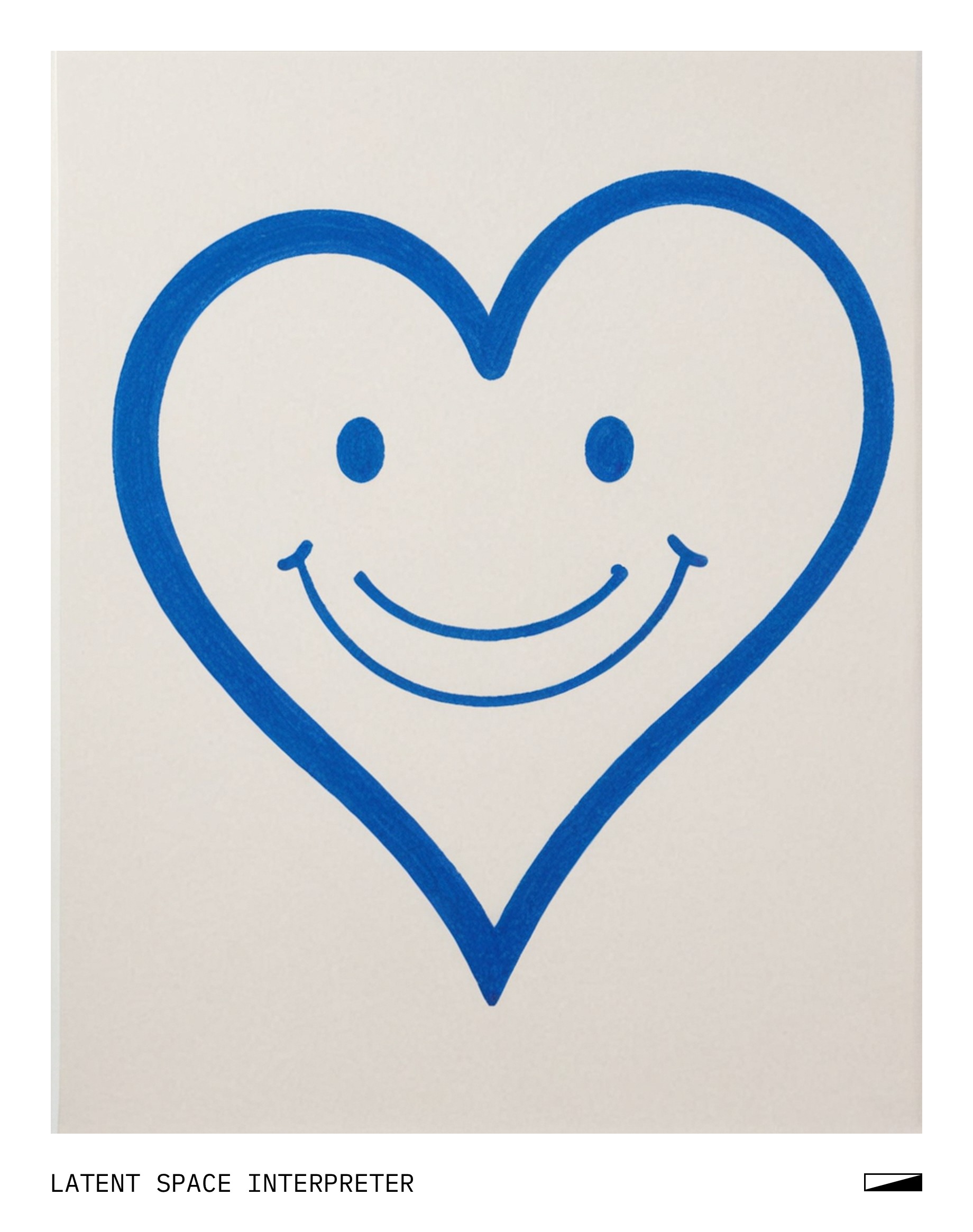 The image features a heart-shaped drawing, likely drawn by a child or artist, with a blue outline and a smiley face inside the heart. The heart is placed on a white background, which makes it stand out even more. The overall composition of the picture gives off a playful and cheerful vibe.