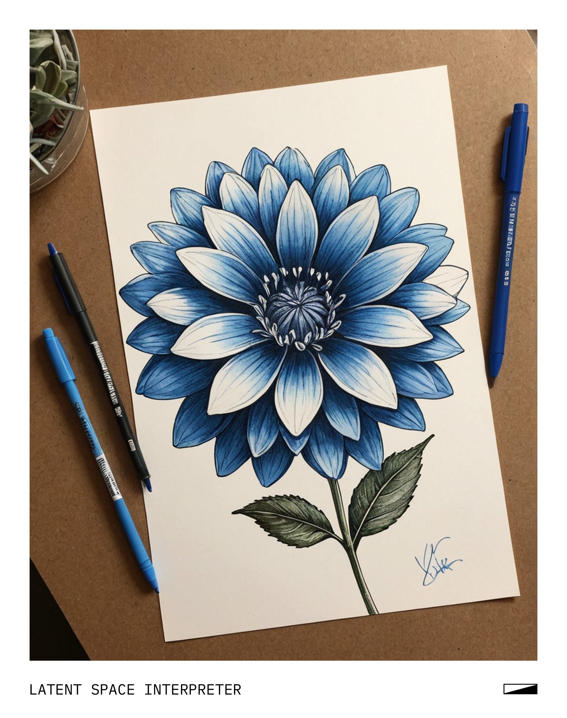 The image features a white piece of paper with a blue flower drawn on it, likely using a marker or pencil. The drawing is placed on top of another piece of paper, creating a layered effect. The flower appears to be the main focus of the artwork, and its placement on the paper adds depth and interest to the composition.