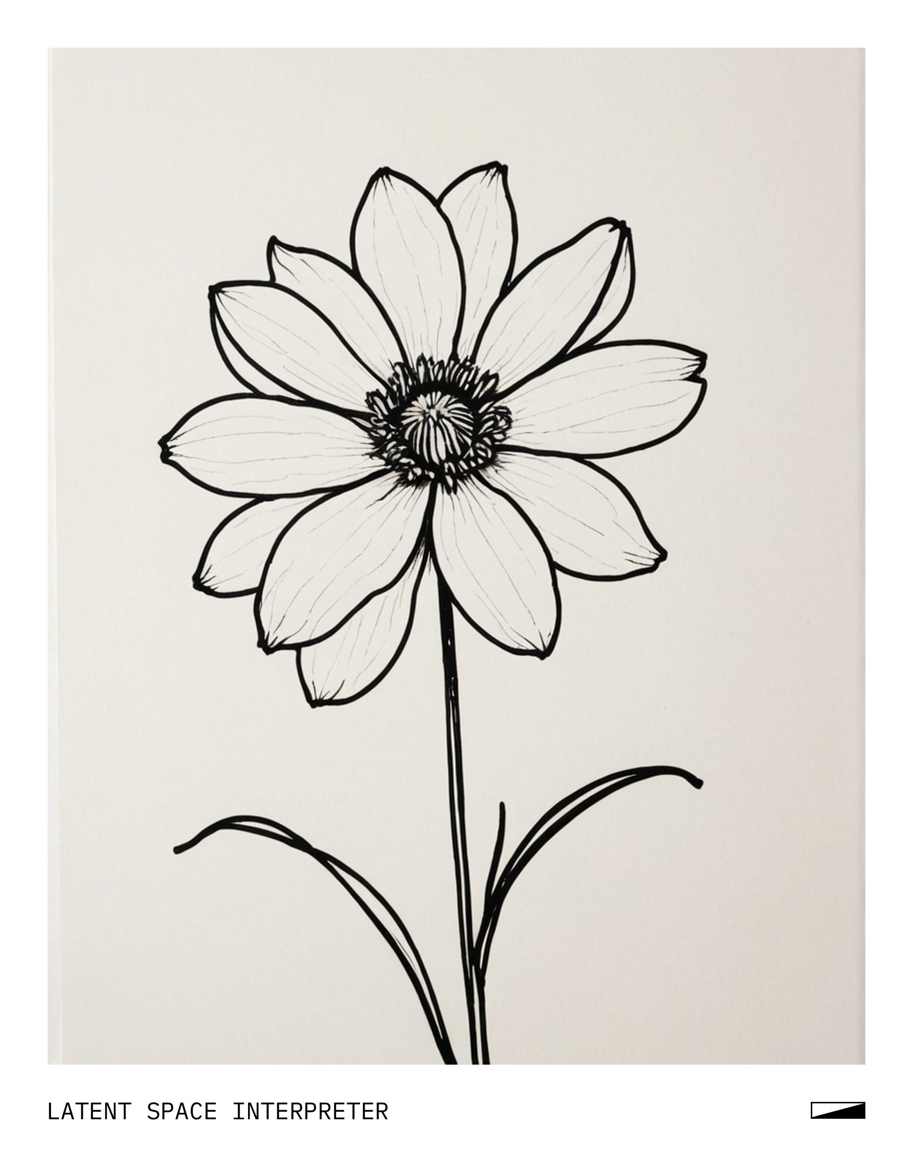 The image features a white background with a single flower drawn on it using a black marker. The flower is positioned towards the left side of the scene, occupying a significant portion of the space. It appears to be a simple drawing of a flower, possibly done by someone as a form of artistic expression or for decorative purposes.