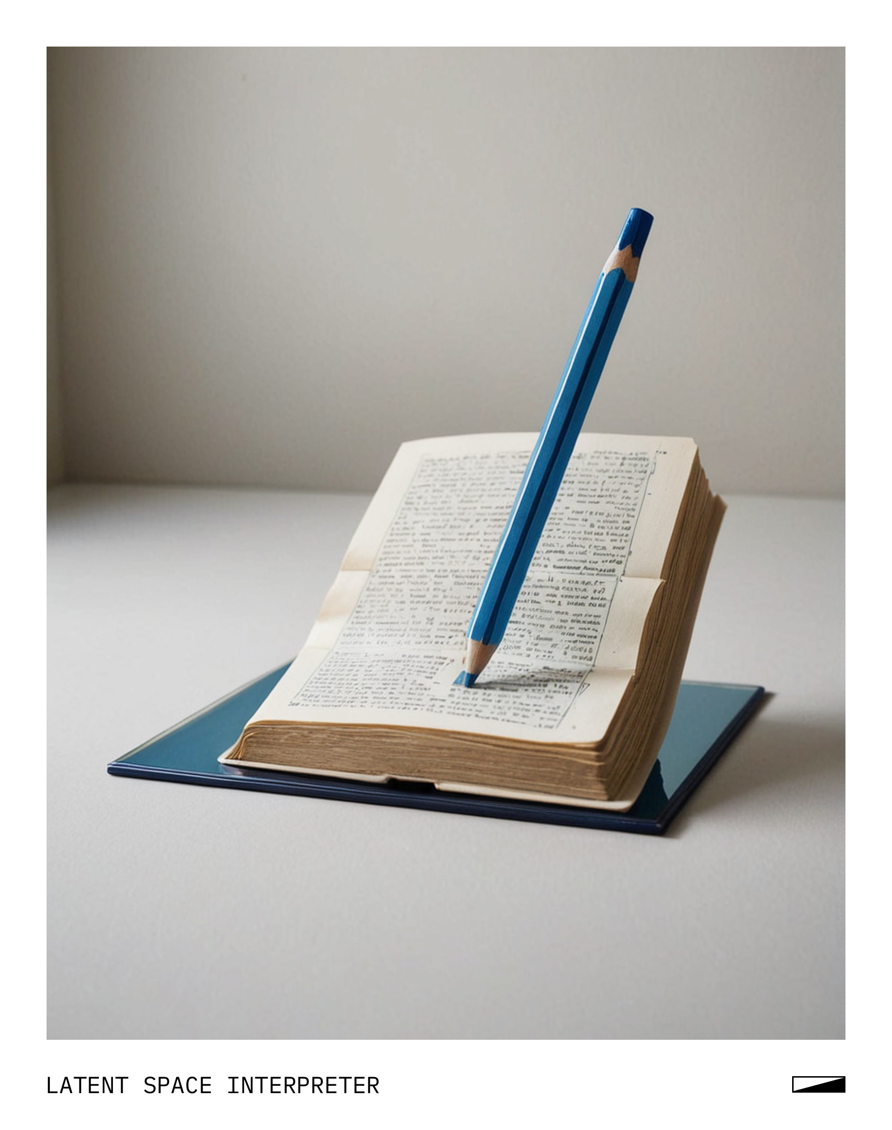 The image features a white piece of paper with a blue pencil drawing of a book on it, likely depicting the spine and pages of a book. The drawing is placed on top of a mirror or glass surface, which reflects the artwork. The paper appears to be stuck to the mirror or glass, creating a unique visual effect.